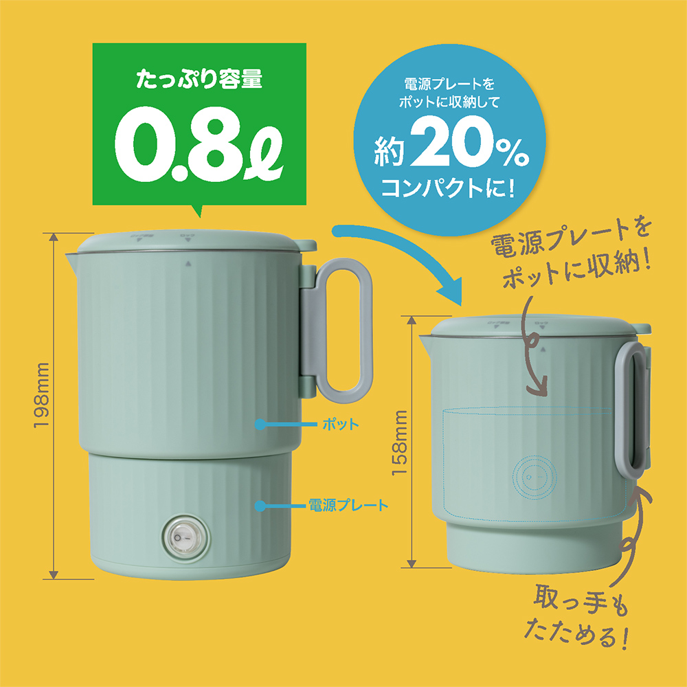 電源プレートをポットに収納!持ち運べる電気ケトル