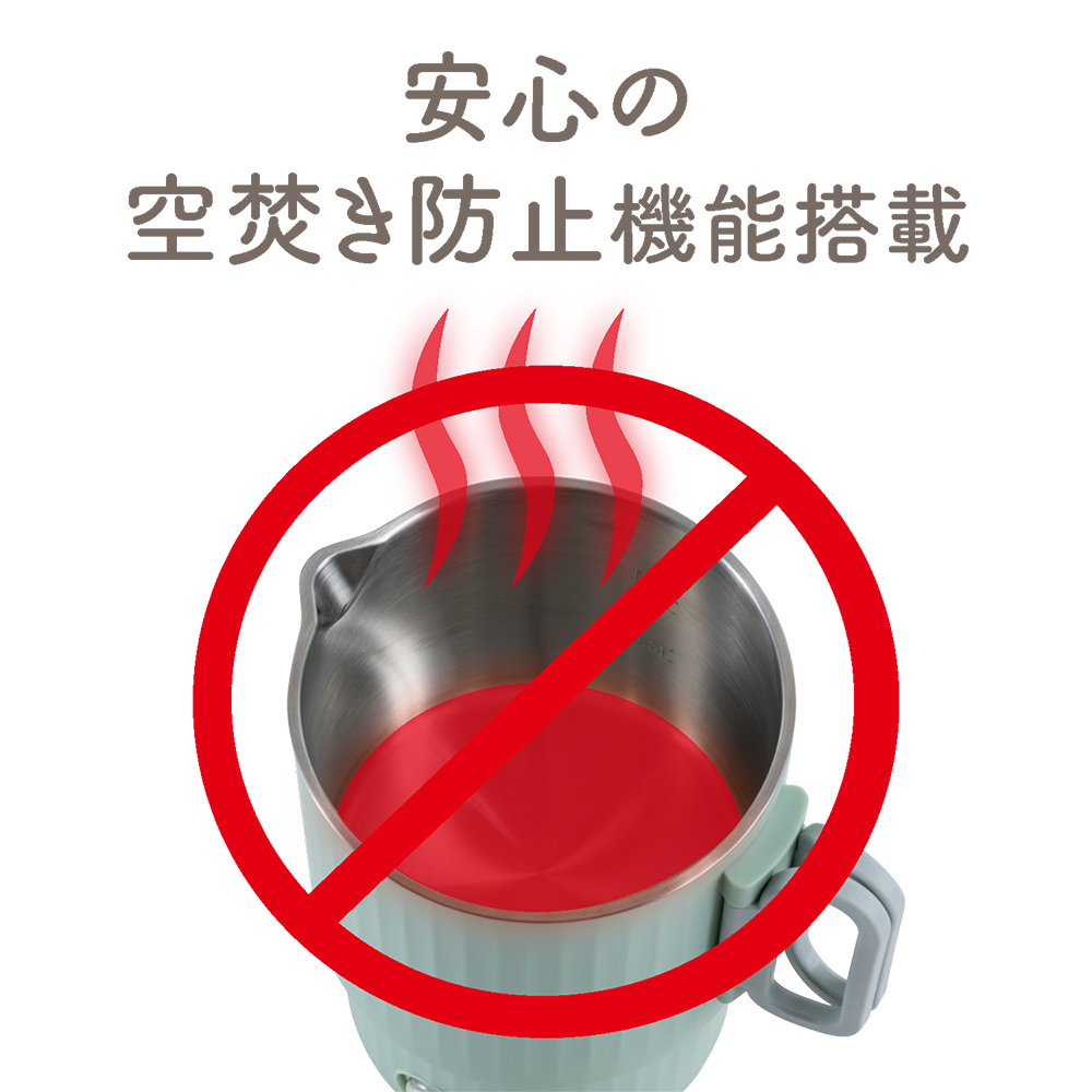 空焚き防止機能により、自動的に電源が切れ事故を防ぎます。