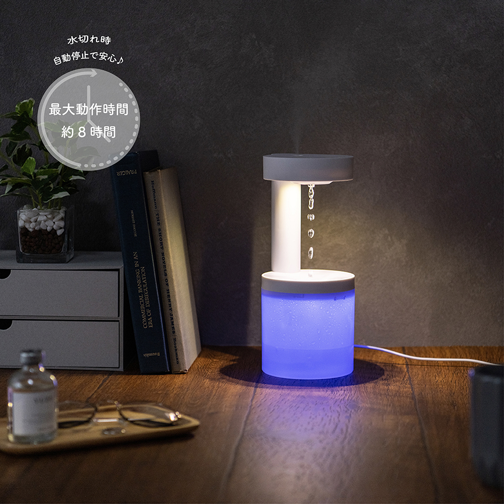 ぷかぷかと浮かび上がるような水滴が目を引く ストロボ演出の不思議な加湿器