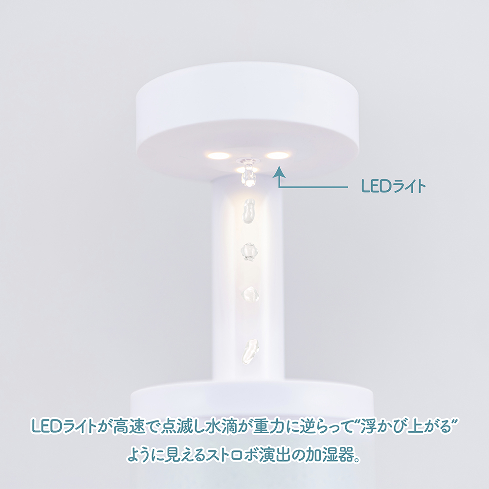 ぷかぷかと浮かび上がるような水滴が目を引く ストロボ演出の不思議な加湿器