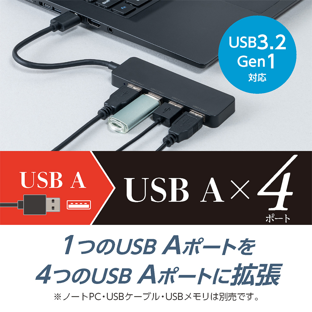 1つのUSB AもしくはType-Cポートを4つのUSB Aポートに拡張します。
