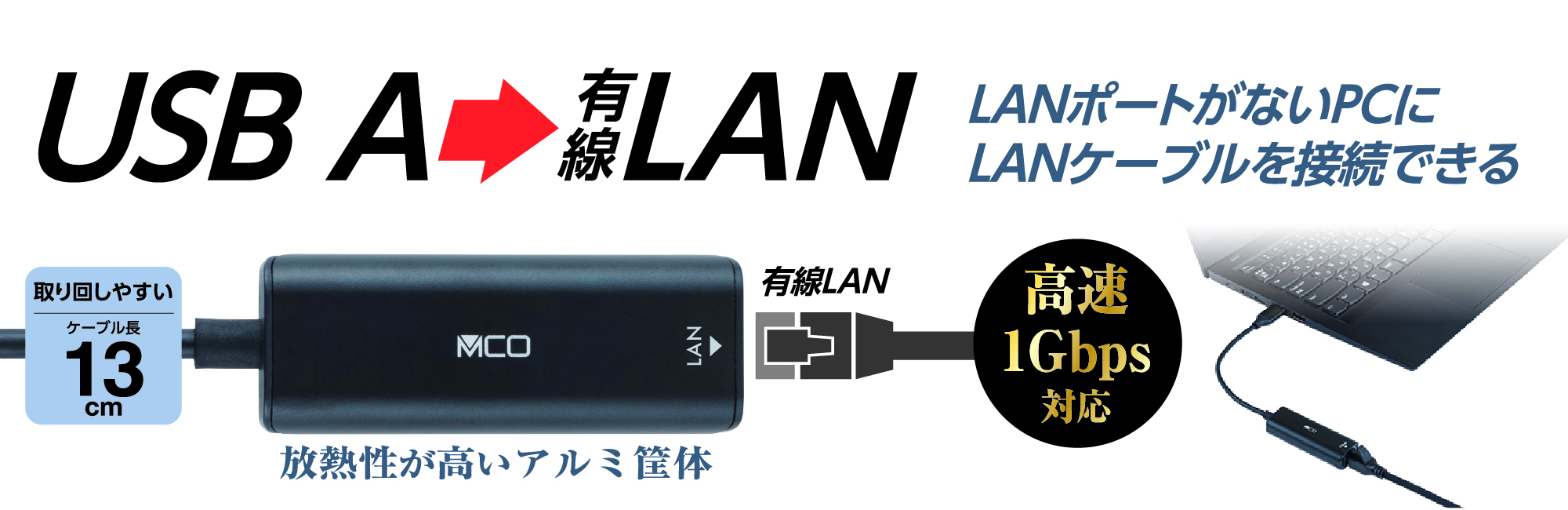 LANポートがないPCでLANケーブルが接続できる