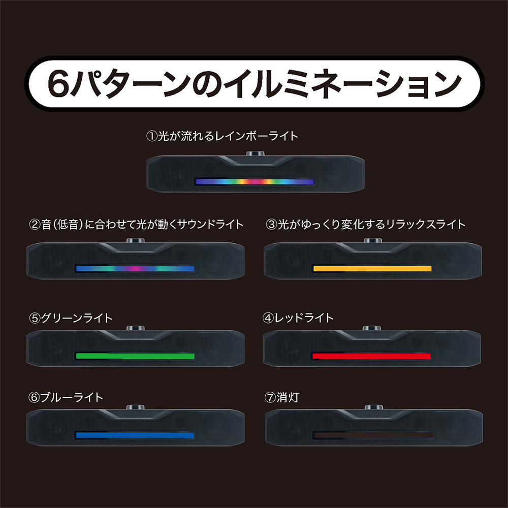 RGB LED搭載で6パターンのイルミネーションを演出