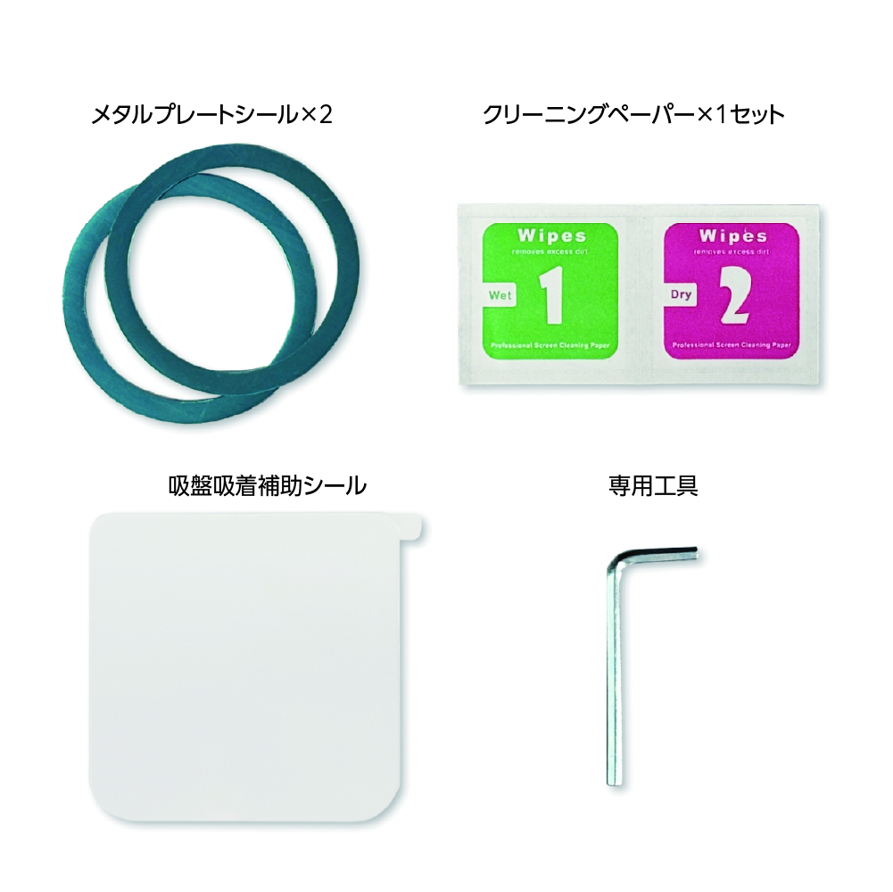 | 付属品 | メタルプレートシール×2、クリーニングペーパー×1セット、吸盤吸着補助シール、専用工具、取扱説明書 |